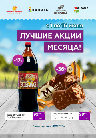 . Мы опубликовали акцию Акционный каталог (цены действительны по карте "ВМЕСТЕКАРД"), действие которой начинается 1 Июля и заканчивается 16 Июля. Поэтому если Вы житель города Брянск либо же его гость, детальненько изучите данные предложения. Вполне возможно, здесь есть именно те скидки в супермаркетах, что Вы так давно и безутешно искали. Вооружитесь знаниями и вперед в ближайший к Вам магазин на шопинг! Только будьте бдительны и внимательно смотрите на дату, вдруг акция уже закончилась или еще не началась.