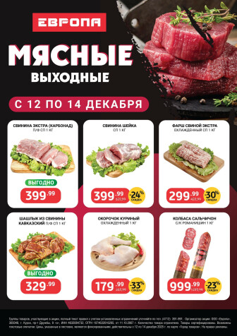 . Мы опубликовали акцию Мясные выходные, действие которой начинается 12 Декабря и заканчивается 14 Декабря. Поэтому если Вы житель города Брянск либо же его гость, детальненько изучите данные предложения. Вполне возможно, здесь есть именно те скидки в супермаркетах, что Вы так давно и безутешно искали. Вооружитесь знаниями и вперед в ближайший к Вам магазин на шопинг! Только будьте бдительны и внимательно смотрите на дату, вдруг акция уже закончилась или еще не началась.