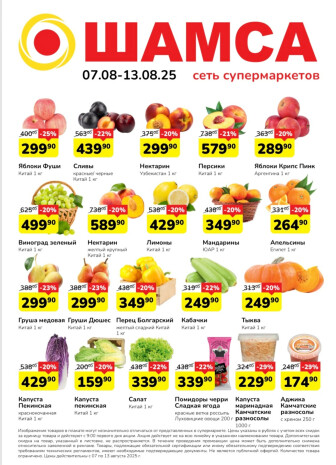 На текущей страничке можно найти просмотреть конкретные интересные предложения от супермаркетов Шамса . Мы опубликовали акцию Акция, действие которой начинается 7 Августа и заканчивается 13 Августа. Поэтому если Вы житель города Елизово либо же его гость, детальненько изучите данные предложения. Вполне возможно, здесь есть именно те скидки в супермаркетах, что Вы так давно и безутешно искали. Вооружитесь знаниями и вперед в ближайший к Вам магазин на шопинг! Только будьте бдительны и внимательно смотрите на дату, вдруг акция уже закончилась или еще не началась.
