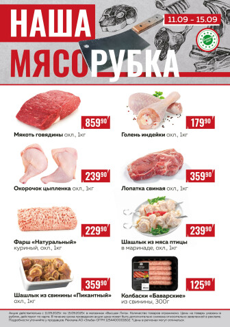 . Мы опубликовали акцию Наша мясорубка, действие которой начинается 11 Сентября и заканчивается 15 Сентября. Поэтому если Вы житель города Георгиевское либо же его гость, детальненько изучите данные предложения. Вполне возможно, здесь есть именно те скидки в супермаркетах, что Вы так давно и безутешно искали. Вооружитесь знаниями и вперед в ближайший к Вам магазин на шопинг! Только будьте бдительны и внимательно смотрите на дату, вдруг акция уже закончилась или еще не началась.