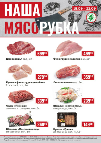 . Мы опубликовали акцию Наша мясорубка, действие которой начинается 18 Сентября и заканчивается 22 Сентября. Поэтому если Вы житель города Георгиевское либо же его гость, детальненько изучите данные предложения. Вполне возможно, здесь есть именно те скидки в супермаркетах, что Вы так давно и безутешно искали. Вооружитесь знаниями и вперед в ближайший к Вам магазин на шопинг! Только будьте бдительны и внимательно смотрите на дату, вдруг акция уже закончилась или еще не началась.