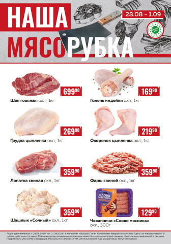 . Мы опубликовали акцию Наша мясорубка, действие которой начинается 28 Августа и заканчивается 1 Сентября. Поэтому если Вы житель города Георгиевское либо же его гость, детальненько изучите данные предложения. Вполне возможно, здесь есть именно те скидки в супермаркетах, что Вы так давно и безутешно искали. Вооружитесь знаниями и вперед в ближайший к Вам магазин на шопинг! Только будьте бдительны и внимательно смотрите на дату, вдруг акция уже закончилась или еще не началась.