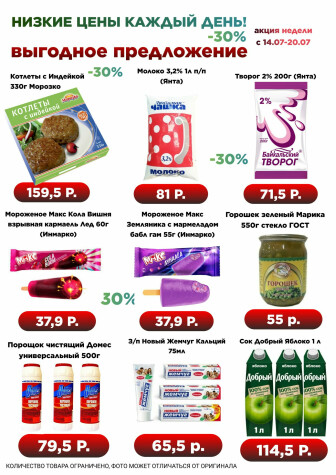 На текущей страничке можно найти просмотреть конкретные интересные предложения от супермаркетов Народный Дискаунтер . Мы опубликовали акцию Акция недели, действие которой начинается 14 Июля и заканчивается 20 Июля. Поэтому если Вы житель города Иркутск либо же его гость, детальненько изучите данные предложения. Вполне возможно, здесь есть именно те скидки в супермаркетах, что Вы так давно и безутешно искали. Вооружитесь знаниями и вперед в ближайший к Вам магазин на шопинг! Только будьте бдительны и внимательно смотрите на дату, вдруг акция уже закончилась или еще не началась.