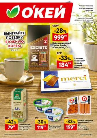 На текущей страничке можно найти просмотреть конкретные интересные предложения от супермаркетов Окей гипермаркет . Мы опубликовали акцию Каталог регулярных предложений, действие которой начинается 28 Августа и заканчивается 10 Сентября. Поэтому если Вы житель города Иркутск либо же его гость, детальненько изучите данные предложения. Вполне возможно, здесь есть именно те скидки в супермаркетах, что Вы так давно и безутешно искали. Вооружитесь знаниями и вперед в ближайший к Вам магазин на шопинг! Только будьте бдительны и внимательно смотрите на дату, вдруг акция уже закончилась или еще не началась.