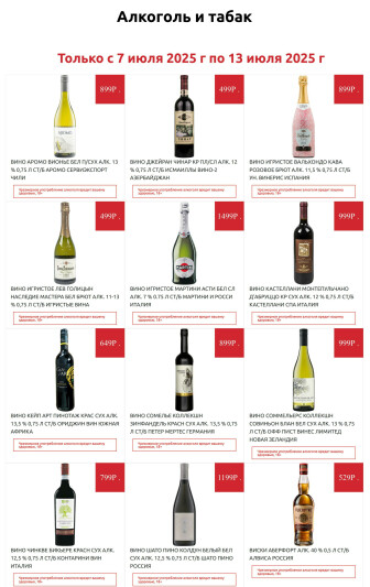 На текущей страничке можно найти просмотреть конкретные интересные предложения от супермаркетов Виктория . Мы опубликовали акцию Алкоголь, действие которой начинается 7 Июля и заканчивается 13 Июля. Поэтому если Вы житель города Калининград либо же его гость, детальненько изучите данные предложения. Вполне возможно, здесь есть именно те скидки в супермаркетах, что Вы так давно и безутешно искали. Вооружитесь знаниями и вперед в ближайший к Вам магазин на шопинг! Только будьте бдительны и внимательно смотрите на дату, вдруг акция уже закончилась или еще не началась.