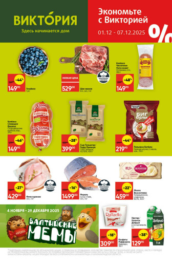 . Мы опубликовали акцию Экономьте с Викторией, действие которой начинается 1 Декабря и заканчивается 7 Декабря. Поэтому если Вы житель города Калининград либо же его гость, детальненько изучите данные предложения. Вполне возможно, здесь есть именно те скидки в супермаркетах, что Вы так давно и безутешно искали. Вооружитесь знаниями и вперед в ближайший к Вам магазин на шопинг! Только будьте бдительны и внимательно смотрите на дату, вдруг акция уже закончилась или еще не началась.