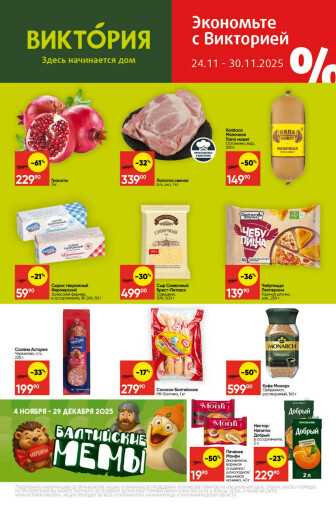 . Мы опубликовали акцию Экономьте с Викторией, действие которой начинается 24 Ноября и заканчивается 30 Ноября. Поэтому если Вы житель города Калининград либо же его гость, детальненько изучите данные предложения. Вполне возможно, здесь есть именно те скидки в супермаркетах, что Вы так давно и безутешно искали. Вооружитесь знаниями и вперед в ближайший к Вам магазин на шопинг! Только будьте бдительны и внимательно смотрите на дату, вдруг акция уже закончилась или еще не началась.