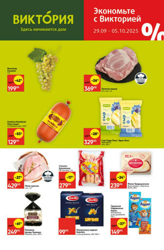 На текущей страничке можно найти просмотреть конкретные интересные предложения от супермаркетов Виктория . Мы опубликовали акцию Экономьте с Викторией, действие которой начинается 29 Сентября и заканчивается 5 Октября. Поэтому если Вы житель города Калининград либо же его гость, детальненько изучите данные предложения. Вполне возможно, здесь есть именно те скидки в супермаркетах, что Вы так давно и безутешно искали. Вооружитесь знаниями и вперед в ближайший к Вам магазин на шопинг! Только будьте бдительны и внимательно смотрите на дату, вдруг акция уже закончилась или еще не началась.