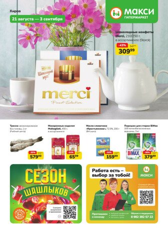 На текущей страничке можно найти просмотреть конкретные интересные предложения от гипермаркетов Макси гипермаркет . Мы опубликовали акцию Каталог (скидка предоставляется при наличии карты "Макси"), действие которой начинается 21 Августа и заканчивается 3 Сентября. Поэтому если Вы житель города Киров либо же его гость, детальненько изучите данные предложения. Вполне возможно, здесь есть именно те скидки в супермаркетах, что Вы так давно и безутешно искали. Вооружитесь знаниями и вперед в ближайший к Вам магазин на шопинг! Только будьте бдительны и внимательно смотрите на дату, вдруг акция уже закончилась или еще не началась.