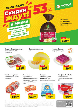 На текущей страничке можно найти просмотреть конкретные интересные предложения от гипермаркетов Макси гипермаркет . Мы опубликовали акцию Скидки ждут! (скидка предоставляется при наличии карты "Макси"), действие которой начинается 28 Августа и заканчивается 3 Сентября. Поэтому если Вы житель города Киров либо же его гость, детальненько изучите данные предложения. Вполне возможно, здесь есть именно те скидки в супермаркетах, что Вы так давно и безутешно искали. Вооружитесь знаниями и вперед в ближайший к Вам магазин на шопинг! Только будьте бдительны и внимательно смотрите на дату, вдруг акция уже закончилась или еще не началась.