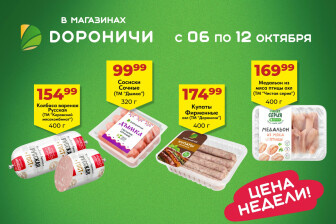 На текущей страничке можно найти просмотреть конкретные интересные предложения от супермаркетов Дороничи . Мы опубликовали акцию Цена недели, действие которой начинается 6 Октября и заканчивается 12 Октября. Поэтому если Вы житель города Кирово-Чепецк либо же его гость, детальненько изучите данные предложения. Вполне возможно, здесь есть именно те скидки в супермаркетах, что Вы так давно и безутешно искали. Вооружитесь знаниями и вперед в ближайший к Вам магазин на шопинг! Только будьте бдительны и внимательно смотрите на дату, вдруг акция уже закончилась или еще не началась.