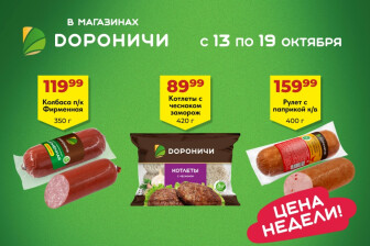 На текущей страничке можно найти просмотреть конкретные интересные предложения от супермаркетов Дороничи . Мы опубликовали акцию Цена недели, действие которой начинается 13 Октября и заканчивается 19 Октября. Поэтому если Вы житель города Кирово-Чепецк либо же его гость, детальненько изучите данные предложения. Вполне возможно, здесь есть именно те скидки в супермаркетах, что Вы так давно и безутешно искали. Вооружитесь знаниями и вперед в ближайший к Вам магазин на шопинг! Только будьте бдительны и внимательно смотрите на дату, вдруг акция уже закончилась или еще не началась.