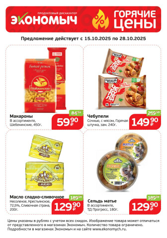 На текущей страничке можно найти просмотреть конкретные интересные предложения от супермаркетов Экономыч . Мы опубликовали акцию Каталог "Горячие цены", действие которой начинается 15 Октября и заканчивается 28 Октября. Поэтому если Вы житель города Корсаков либо же его гость, детальненько изучите данные предложения. Вполне возможно, здесь есть именно те скидки в супермаркетах, что Вы так давно и безутешно искали. Вооружитесь знаниями и вперед в ближайший к Вам магазин на шопинг! Только будьте бдительны и внимательно смотрите на дату, вдруг акция уже закончилась или еще не началась.