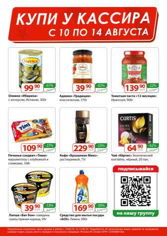 . Мы опубликовали акцию Купи у кассира, действие которой начинается 10 Августа и заканчивается 14 Августа. Поэтому если Вы житель города Кострома либо же его гость, детальненько изучите данные предложения. Вполне возможно, здесь есть именно те скидки в супермаркетах, что Вы так давно и безутешно искали. Вооружитесь знаниями и вперед в ближайший к Вам магазин на шопинг! Только будьте бдительны и внимательно смотрите на дату, вдруг акция уже закончилась или еще не началась.