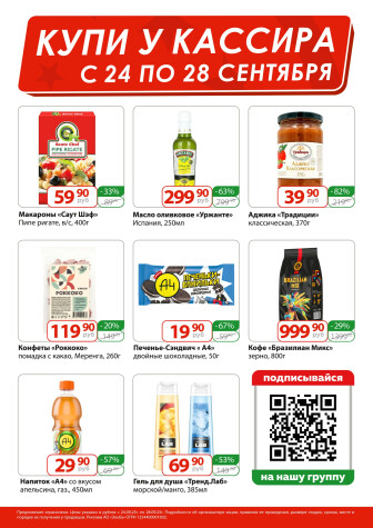 . Мы опубликовали акцию Купи у кассира, действие которой начинается 24 Сентября и заканчивается 28 Сентября. Поэтому если Вы житель города Кострома либо же его гость, детальненько изучите данные предложения. Вполне возможно, здесь есть именно те скидки в супермаркетах, что Вы так давно и безутешно искали. Вооружитесь знаниями и вперед в ближайший к Вам магазин на шопинг! Только будьте бдительны и внимательно смотрите на дату, вдруг акция уже закончилась или еще не началась.