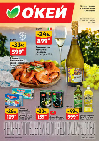 На текущей страничке можно найти просмотреть конкретные интересные предложения от супермаркетов Окей гипермаркет . Мы опубликовали акцию Каталог регулярных предложений, действие которой начинается 31 Июля и заканчивается 13 Августа. Поэтому если Вы житель города Краснодар либо же его гость, детальненько изучите данные предложения. Вполне возможно, здесь есть именно те скидки в супермаркетах, что Вы так давно и безутешно искали. Вооружитесь знаниями и вперед в ближайший к Вам магазин на шопинг! Только будьте бдительны и внимательно смотрите на дату, вдруг акция уже закончилась или еще не началась.