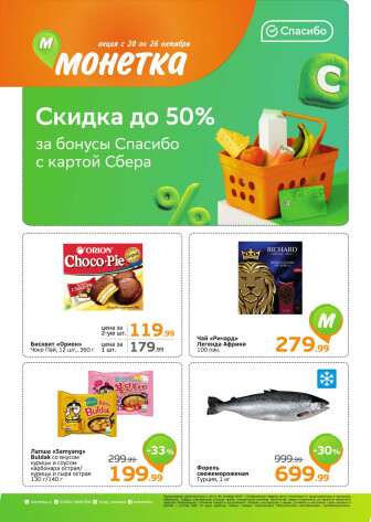На текущей страничке можно найти просмотреть конкретные интересные предложения от супермаркетов Монетка дискаунтер . Мы опубликовали акцию Акция, действие которой начинается 20 Октября и заканчивается 26 Октября. Поэтому если Вы житель города Москва либо же его гость, детальненько изучите данные предложения. Вполне возможно, здесь есть именно те скидки в супермаркетах, что Вы так давно и безутешно искали. Вооружитесь знаниями и вперед в ближайший к Вам магазин на шопинг! Только будьте бдительны и внимательно смотрите на дату, вдруг акция уже закончилась или еще не началась.