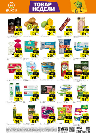 На текущей страничке можно найти просмотреть конкретные интересные предложения от магазинов Дикси . Мы опубликовали акцию Товары недели, действие которой начинается 13 Октября и заканчивается 19 Октября. Поэтому если Вы житель города Москва либо же его гость, детальненько изучите данные предложения. Вполне возможно, здесь есть именно те скидки в супермаркетах, что Вы так давно и безутешно искали. Вооружитесь знаниями и вперед в ближайший к Вам магазин на шопинг! Только будьте бдительны и внимательно смотрите на дату, вдруг акция уже закончилась или еще не началась.