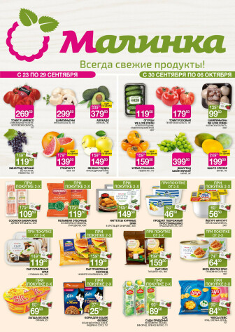 На текущей страничке можно найти просмотреть конкретные интересные предложения от супермаркетов Малинка . Мы опубликовали акцию Всегда свежие продукты!, действие которой начинается 23 Сентября и заканчивается 6 Октября. Поэтому если Вы житель города Москва либо же его гость, детальненько изучите данные предложения. Вполне возможно, здесь есть именно те скидки в супермаркетах, что Вы так давно и безутешно искали. Вооружитесь знаниями и вперед в ближайший к Вам магазин на шопинг! Только будьте бдительны и внимательно смотрите на дату, вдруг акция уже закончилась или еще не началась.