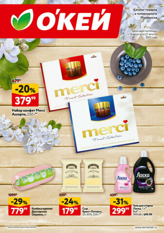 На текущей страничке можно найти просмотреть конкретные интересные предложения от супермаркетов Окей гипермаркет . Мы опубликовали акцию Каталог регулярных предложений, действие которой начинается 14 Августа и заканчивается 27 Августа. Поэтому если Вы житель города Мурманск либо же его гость, детальненько изучите данные предложения. Вполне возможно, здесь есть именно те скидки в супермаркетах, что Вы так давно и безутешно искали. Вооружитесь знаниями и вперед в ближайший к Вам магазин на шопинг! Только будьте бдительны и внимательно смотрите на дату, вдруг акция уже закончилась или еще не началась.