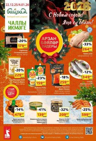 . Мы опубликовали акцию Каталог, действие которой начинается 22 Декабря и заканчивается 4 Января. Поэтому если Вы житель города Набережные Челны либо же его гость, детальненько изучите данные предложения. Вполне возможно, здесь есть именно те скидки в супермаркетах, что Вы так давно и безутешно искали. Вооружитесь знаниями и вперед в ближайший к Вам магазин на шопинг! Только будьте бдительны и внимательно смотрите на дату, вдруг акция уже закончилась или еще не началась.
