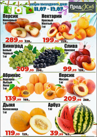 На текущей страничке можно найти просмотреть конкретные интересные предложения от супермаркетов ПродСиб . Мы опубликовали акцию Акции выходного дня!, действие которой начинается 11 Июля и заканчивается 13 Июля. Поэтому если Вы житель города Новосибирск либо же его гость, детальненько изучите данные предложения. Вполне возможно, здесь есть именно те скидки в супермаркетах, что Вы так давно и безутешно искали. Вооружитесь знаниями и вперед в ближайший к Вам магазин на шопинг! Только будьте бдительны и внимательно смотрите на дату, вдруг акция уже закончилась или еще не началась.
