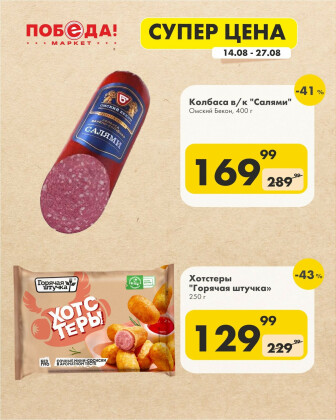 . Мы опубликовали акцию Супер цена, действие которой начинается 14 Августа и заканчивается 27 Августа. Поэтому если Вы житель города Омск либо же его гость, детальненько изучите данные предложения. Вполне возможно, здесь есть именно те скидки в супермаркетах, что Вы так давно и безутешно искали. Вооружитесь знаниями и вперед в ближайший к Вам магазин на шопинг! Только будьте бдительны и внимательно смотрите на дату, вдруг акция уже закончилась или еще не началась.