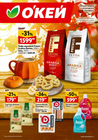 . Мы опубликовали акцию Каталог регулярных предложений, действие которой начинается 23 Октября и заканчивается 5 Ноября. Поэтому если Вы житель города Оренбург либо же его гость, детальненько изучите данные предложения. Вполне возможно, здесь есть именно те скидки в супермаркетах, что Вы так давно и безутешно искали. Вооружитесь знаниями и вперед в ближайший к Вам магазин на шопинг! Только будьте бдительны и внимательно смотрите на дату, вдруг акция уже закончилась или еще не началась.