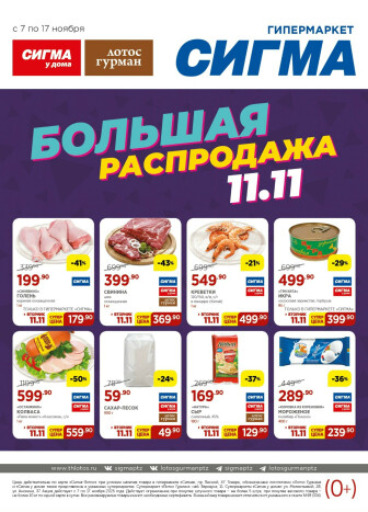. Мы опубликовали акцию Каталог(цены действительны по картам Сигма-Лотос и социальным картам), действие которой начинается 7 Ноября и заканчивается 17 Ноября. Поэтому если Вы житель города Петрозаводск либо же его гость, детальненько изучите данные предложения. Вполне возможно, здесь есть именно те скидки в супермаркетах, что Вы так давно и безутешно искали. Вооружитесь знаниями и вперед в ближайший к Вам магазин на шопинг! Только будьте бдительны и внимательно смотрите на дату, вдруг акция уже закончилась или еще не началась.