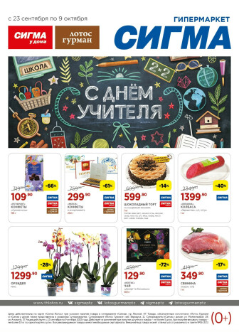 . Мы опубликовали акцию Каталог(цены действительны по картам Сигма-Лотос и социальным картам), действие которой начинается 23 Сентября и заканчивается 9 Октября. Поэтому если Вы житель города Петрозаводск либо же его гость, детальненько изучите данные предложения. Вполне возможно, здесь есть именно те скидки в супермаркетах, что Вы так давно и безутешно искали. Вооружитесь знаниями и вперед в ближайший к Вам магазин на шопинг! Только будьте бдительны и внимательно смотрите на дату, вдруг акция уже закончилась или еще не началась.