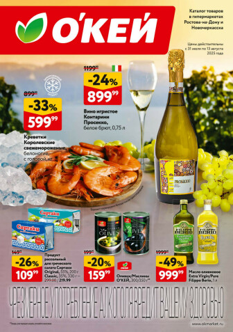 На текущей страничке можно найти просмотреть конкретные интересные предложения от супермаркетов Окей гипермаркет . Мы опубликовали акцию Каталог регулярных предложений, действие которой начинается 31 Июля и заканчивается 13 Августа. Поэтому если Вы житель города Ростов-на-Дону либо же его гость, детальненько изучите данные предложения. Вполне возможно, здесь есть именно те скидки в супермаркетах, что Вы так давно и безутешно искали. Вооружитесь знаниями и вперед в ближайший к Вам магазин на шопинг! Только будьте бдительны и внимательно смотрите на дату, вдруг акция уже закончилась или еще не началась.