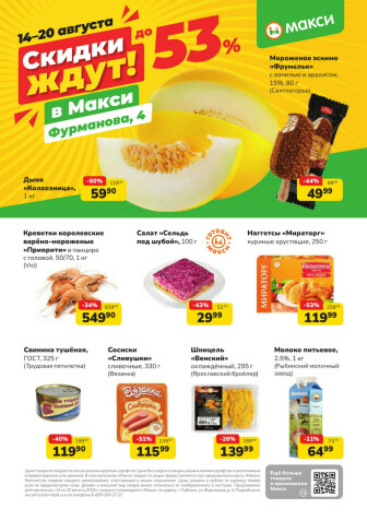 . Мы опубликовали акцию Каталог (скидка предоставляется при наличии карты "Макси"), действие которой начинается 14 Августа и заканчивается 20 Августа. Поэтому если Вы житель города Рыбинск либо же его гость, детальненько изучите данные предложения. Вполне возможно, здесь есть именно те скидки в супермаркетах, что Вы так давно и безутешно искали. Вооружитесь знаниями и вперед в ближайший к Вам магазин на шопинг! Только будьте бдительны и внимательно смотрите на дату, вдруг акция уже закончилась или еще не началась.