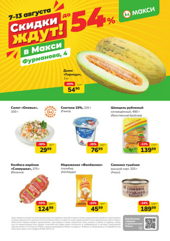 . Мы опубликовали акцию Скидки ждут! (скидка предоставляется при наличии карты "Макси"), действие которой начинается 7 Августа и заканчивается 13 Августа. Поэтому если Вы житель города Рыбинск либо же его гость, детальненько изучите данные предложения. Вполне возможно, здесь есть именно те скидки в супермаркетах, что Вы так давно и безутешно искали. Вооружитесь знаниями и вперед в ближайший к Вам магазин на шопинг! Только будьте бдительны и внимательно смотрите на дату, вдруг акция уже закончилась или еще не началась.