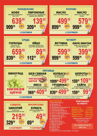 Если Вы здесь, значит, Вас интересуют скидки супермаркетов. Именно сайт Скидка Онлайн призван помочь Вам снизить ежедневные расходы и позволит быстренько найти акции всех супермаркетов. Мы тщательнейшим образом отыскали и собрали инфу про акции и скидки в магазинах. Суть заключается в том, чтобы Вы отправлялись совершать свои покупки, начиная от продуктов и заканчивая дорогостоящей бытовой техникой, по наиболее выгодным ценам.