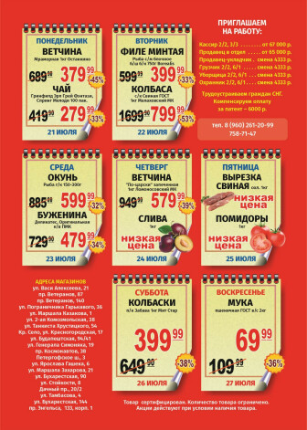 Если Вы здесь, значит, Вас интересуют скидки супермаркетов. Именно сайт Скидка Онлайн призван помочь Вам снизить ежедневные расходы и позволит быстренько найти акции всех супермаркетов. Мы тщательнейшим образом отыскали и собрали инфу про акции и скидки в магазинах. Суть заключается в том, чтобы Вы отправлялись совершать свои покупки, начиная от продуктов и заканчивая дорогостоящей бытовой техникой, по наиболее выгодным ценам.
