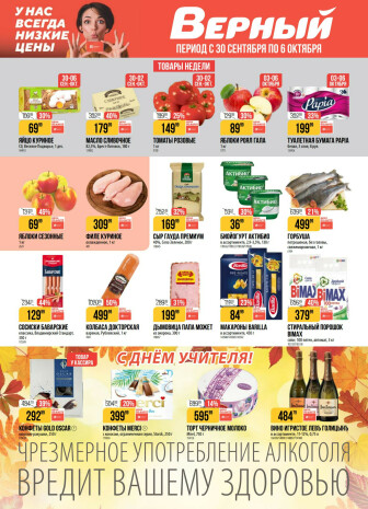 На текущей страничке можно найти просмотреть конкретные интересные предложения от супермаркетов Верный . Мы опубликовали акцию Акция, действие которой начинается 30 Сентября и заканчивается 6 Октября. Поэтому если Вы житель города Санкт-Петербург либо же его гость, детальненько изучите данные предложения. Вполне возможно, здесь есть именно те скидки в супермаркетах, что Вы так давно и безутешно искали. Вооружитесь знаниями и вперед в ближайший к Вам магазин на шопинг! Только будьте бдительны и внимательно смотрите на дату, вдруг акция уже закончилась или еще не началась.