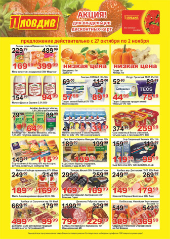 . Мы опубликовали акцию Для владельцев дисконтных карт, действие которой начинается 27 Октября и заканчивается 2 Ноября. Поэтому если Вы житель города Санкт-Петербург либо же его гость, детальненько изучите данные предложения. Вполне возможно, здесь есть именно те скидки в супермаркетах, что Вы так давно и безутешно искали. Вооружитесь знаниями и вперед в ближайший к Вам магазин на шопинг! Только будьте бдительны и внимательно смотрите на дату, вдруг акция уже закончилась или еще не началась.