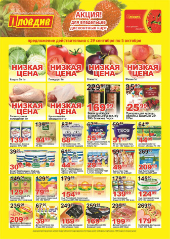 На текущей страничке можно найти просмотреть конкретные интересные предложения от супермаркетов Пловдив . Мы опубликовали акцию Для владельцев дисконтных карт, действие которой начинается 29 Сентября и заканчивается 5 Октября. Поэтому если Вы житель города Санкт-Петербург либо же его гость, детальненько изучите данные предложения. Вполне возможно, здесь есть именно те скидки в супермаркетах, что Вы так давно и безутешно искали. Вооружитесь знаниями и вперед в ближайший к Вам магазин на шопинг! Только будьте бдительны и внимательно смотрите на дату, вдруг акция уже закончилась или еще не началась.