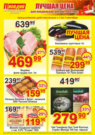 На текущей страничке можно найти просмотреть конкретные интересные предложения от супермаркетов Пловдив . Мы опубликовали акцию Лучшая цена, действие которой начинается 1 Сентября и заканчивается 7 Сентября. Поэтому если Вы житель города Санкт-Петербург либо же его гость, детальненько изучите данные предложения. Вполне возможно, здесь есть именно те скидки в супермаркетах, что Вы так давно и безутешно искали. Вооружитесь знаниями и вперед в ближайший к Вам магазин на шопинг! Только будьте бдительны и внимательно смотрите на дату, вдруг акция уже закончилась или еще не началась.