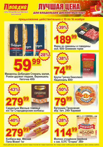 . Мы опубликовали акцию Лучшая цена, действие которой начинается 10 Ноября и заканчивается 16 Ноября. Поэтому если Вы житель города Санкт-Петербург либо же его гость, детальненько изучите данные предложения. Вполне возможно, здесь есть именно те скидки в супермаркетах, что Вы так давно и безутешно искали. Вооружитесь знаниями и вперед в ближайший к Вам магазин на шопинг! Только будьте бдительны и внимательно смотрите на дату, вдруг акция уже закончилась или еще не началась.