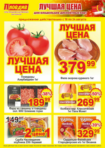 На текущей страничке можно найти просмотреть конкретные интересные предложения от супермаркетов Пловдив . Мы опубликовали акцию Лучшая цена, действие которой начинается 18 Августа и заканчивается 24 Августа. Поэтому если Вы житель города Санкт-Петербург либо же его гость, детальненько изучите данные предложения. Вполне возможно, здесь есть именно те скидки в супермаркетах, что Вы так давно и безутешно искали. Вооружитесь знаниями и вперед в ближайший к Вам магазин на шопинг! Только будьте бдительны и внимательно смотрите на дату, вдруг акция уже закончилась или еще не началась.