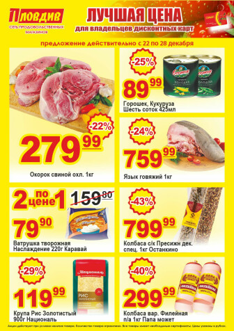 . Мы опубликовали акцию Лучшая цена, действие которой начинается 22 Декабря и заканчивается 28 Декабря. Поэтому если Вы житель города Санкт-Петербург либо же его гость, детальненько изучите данные предложения. Вполне возможно, здесь есть именно те скидки в супермаркетах, что Вы так давно и безутешно искали. Вооружитесь знаниями и вперед в ближайший к Вам магазин на шопинг! Только будьте бдительны и внимательно смотрите на дату, вдруг акция уже закончилась или еще не началась.