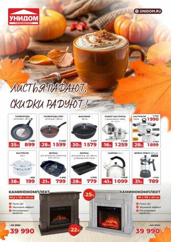 На текущей страничке можно найти просмотреть конкретные интересные предложения от гипермаркетов Гипермаркет "Унидом" . Мы опубликовали акцию Листья падают, скидки радуют!, действие которой начинается 11 Октября и заканчивается 7 Ноября. Поэтому если Вы житель города Сочи либо же его гость, детальненько изучите данные предложения. Вполне возможно, здесь есть именно те скидки в супермаркетах, что Вы так давно и безутешно искали. Вооружитесь знаниями и вперед в ближайший к Вам магазин на шопинг! Только будьте бдительны и внимательно смотрите на дату, вдруг акция уже закончилась или еще не началась.