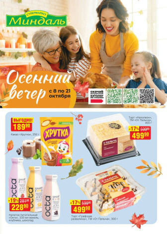 На текущей страничке можно найти просмотреть конкретные интересные предложения от супермаркетов Миндаль . Мы опубликовали акцию Каталог, действие которой начинается 8 Октября и заканчивается 21 Октября. Поэтому если Вы житель города Тольятти либо же его гость, детальненько изучите данные предложения. Вполне возможно, здесь есть именно те скидки в супермаркетах, что Вы так давно и безутешно искали. Вооружитесь знаниями и вперед в ближайший к Вам магазин на шопинг! Только будьте бдительны и внимательно смотрите на дату, вдруг акция уже закончилась или еще не началась.