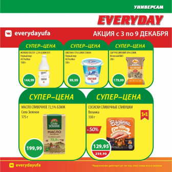 . Мы опубликовали акцию Акционные предложения, действие которой начинается 3 Декабря и заканчивается 9 Декабря. Поэтому если Вы житель города Уфа либо же его гость, детальненько изучите данные предложения. Вполне возможно, здесь есть именно те скидки в супермаркетах, что Вы так давно и безутешно искали. Вооружитесь знаниями и вперед в ближайший к Вам магазин на шопинг! Только будьте бдительны и внимательно смотрите на дату, вдруг акция уже закончилась или еще не началась.