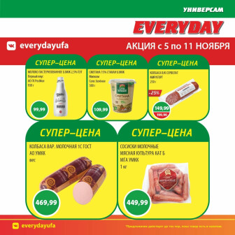 . Мы опубликовали акцию Акционные предложения, действие которой начинается 5 Ноября и заканчивается 11 Ноября. Поэтому если Вы житель города Уфа либо же его гость, детальненько изучите данные предложения. Вполне возможно, здесь есть именно те скидки в супермаркетах, что Вы так давно и безутешно искали. Вооружитесь знаниями и вперед в ближайший к Вам магазин на шопинг! Только будьте бдительны и внимательно смотрите на дату, вдруг акция уже закончилась или еще не началась.