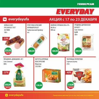 . Мы опубликовали акцию Акционные предложения, действие которой начинается 17 Декабря и заканчивается 23 Декабря. Поэтому если Вы житель города Уфа либо же его гость, детальненько изучите данные предложения. Вполне возможно, здесь есть именно те скидки в супермаркетах, что Вы так давно и безутешно искали. Вооружитесь знаниями и вперед в ближайший к Вам магазин на шопинг! Только будьте бдительны и внимательно смотрите на дату, вдруг акция уже закончилась или еще не началась.