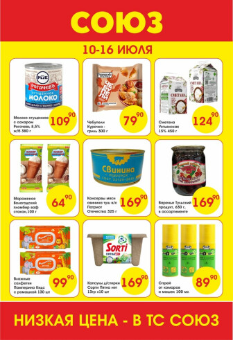 На текущей страничке можно найти просмотреть конкретные интересные предложения от супермаркетов СОЮЗ . Мы опубликовали акцию Просто низкие цены!, действие которой начинается 10 Июля и заканчивается 16 Июля. Поэтому если Вы житель города Вельск либо же его гость, детальненько изучите данные предложения. Вполне возможно, здесь есть именно те скидки в супермаркетах, что Вы так давно и безутешно искали. Вооружитесь знаниями и вперед в ближайший к Вам магазин на шопинг! Только будьте бдительны и внимательно смотрите на дату, вдруг акция уже закончилась или еще не началась.