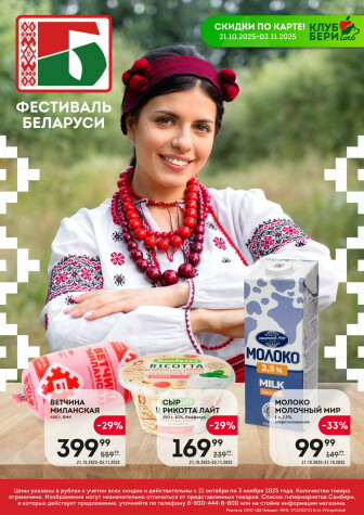 . Мы опубликовали акцию Фестиваль Беларуси, действие которой начинается 21 Октября и заканчивается 3 Ноября. Поэтому если Вы житель города Владивосток либо же его гость, детальненько изучите данные предложения. Вполне возможно, здесь есть именно те скидки в супермаркетах, что Вы так давно и безутешно искали. Вооружитесь знаниями и вперед в ближайший к Вам магазин на шопинг! Только будьте бдительны и внимательно смотрите на дату, вдруг акция уже закончилась или еще не началась.