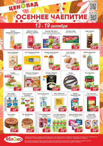 На текущей страничке можно найти просмотреть конкретные интересные предложения от супермаркетов Яблоко . Мы опубликовали акцию Ценопад, действие которой начинается 13 Октября и заканчивается 19 Октября. Поэтому если Вы житель города Екатеринбург либо же его гость, детальненько изучите данные предложения. Вполне возможно, здесь есть именно те скидки в супермаркетах, что Вы так давно и безутешно искали. Вооружитесь знаниями и вперед в ближайший к Вам магазин на шопинг! Только будьте бдительны и внимательно смотрите на дату, вдруг акция уже закончилась или еще не началась.
